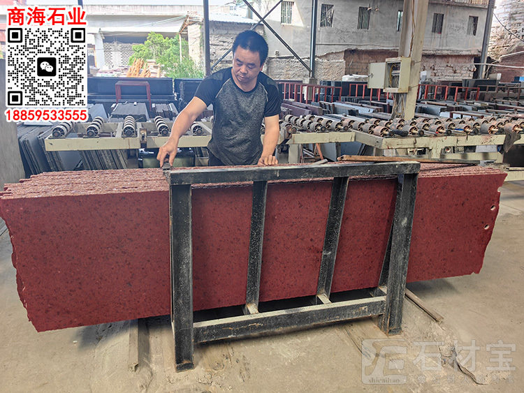 印度红光面毛板龙红石材红珍珠